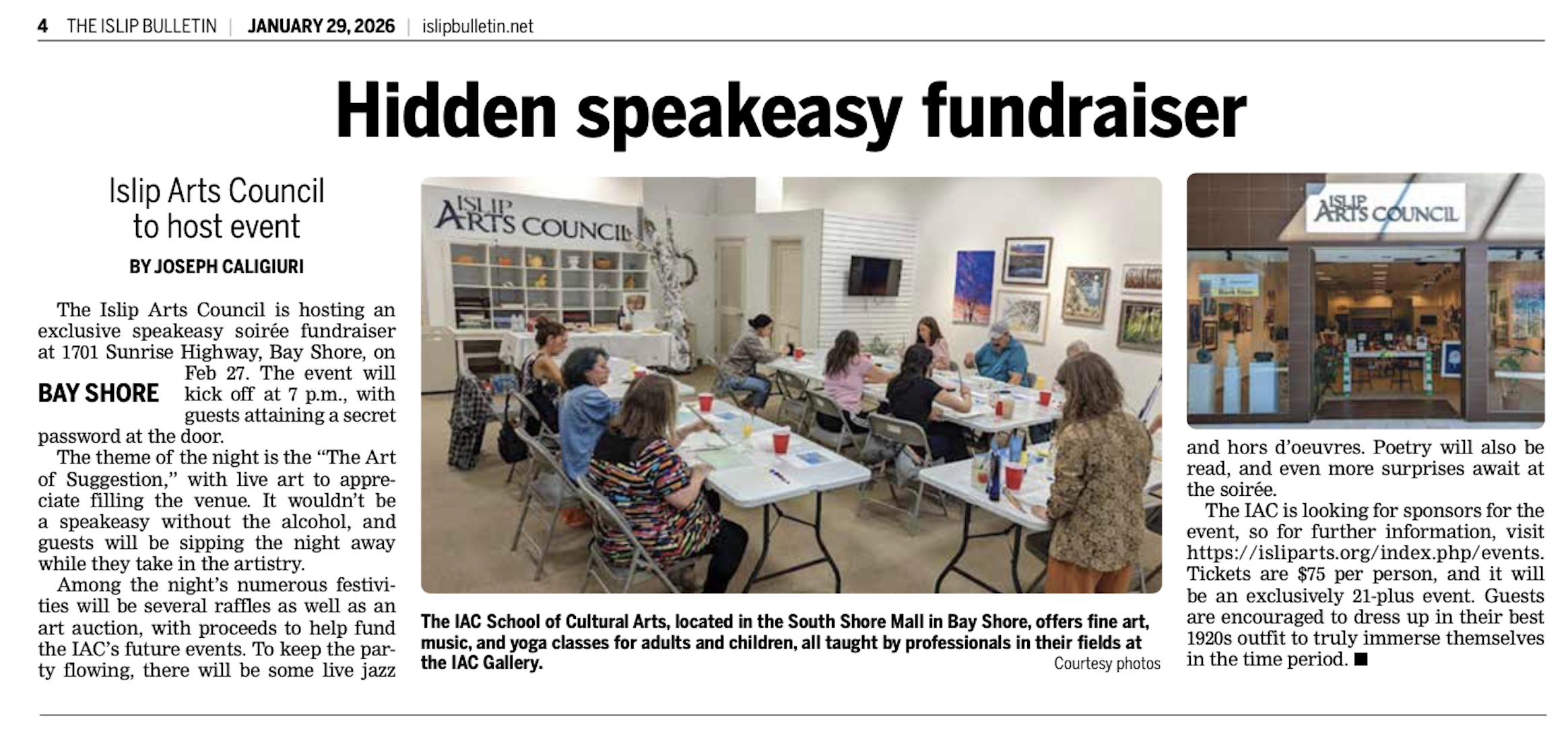 Founded in 1974, the Islip Arts Council is dedicated to leadership, advocacy, and excellence in the arts. Our goal is to present, produce, and promote culturally responsive, high quality programs in varied artistic disciplines for our diverse Long Island community.
