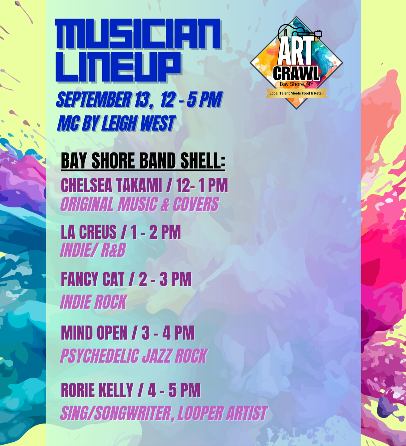 It's a day where our streets come alive with color, music, and creativity. This celebration of art and culture will take place in downtown Bay Shore on September 13, 2025, 12:00PM-5:00PM (Rain date September 14).