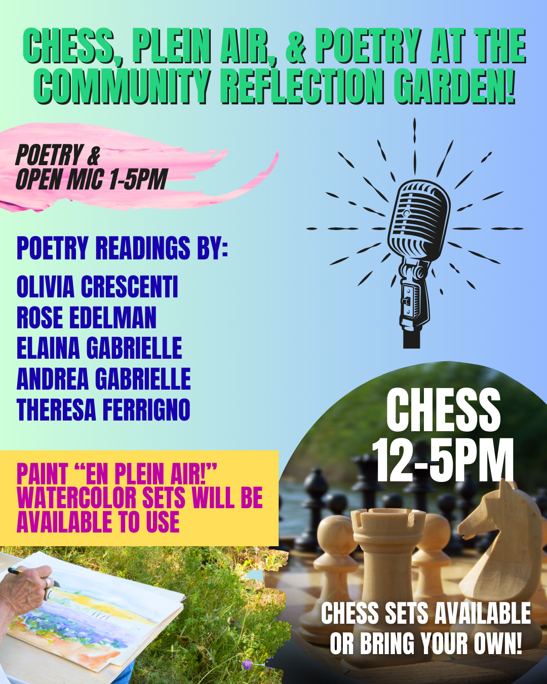 Community Reflection Garden - Live poetry, plein air painting, chess
