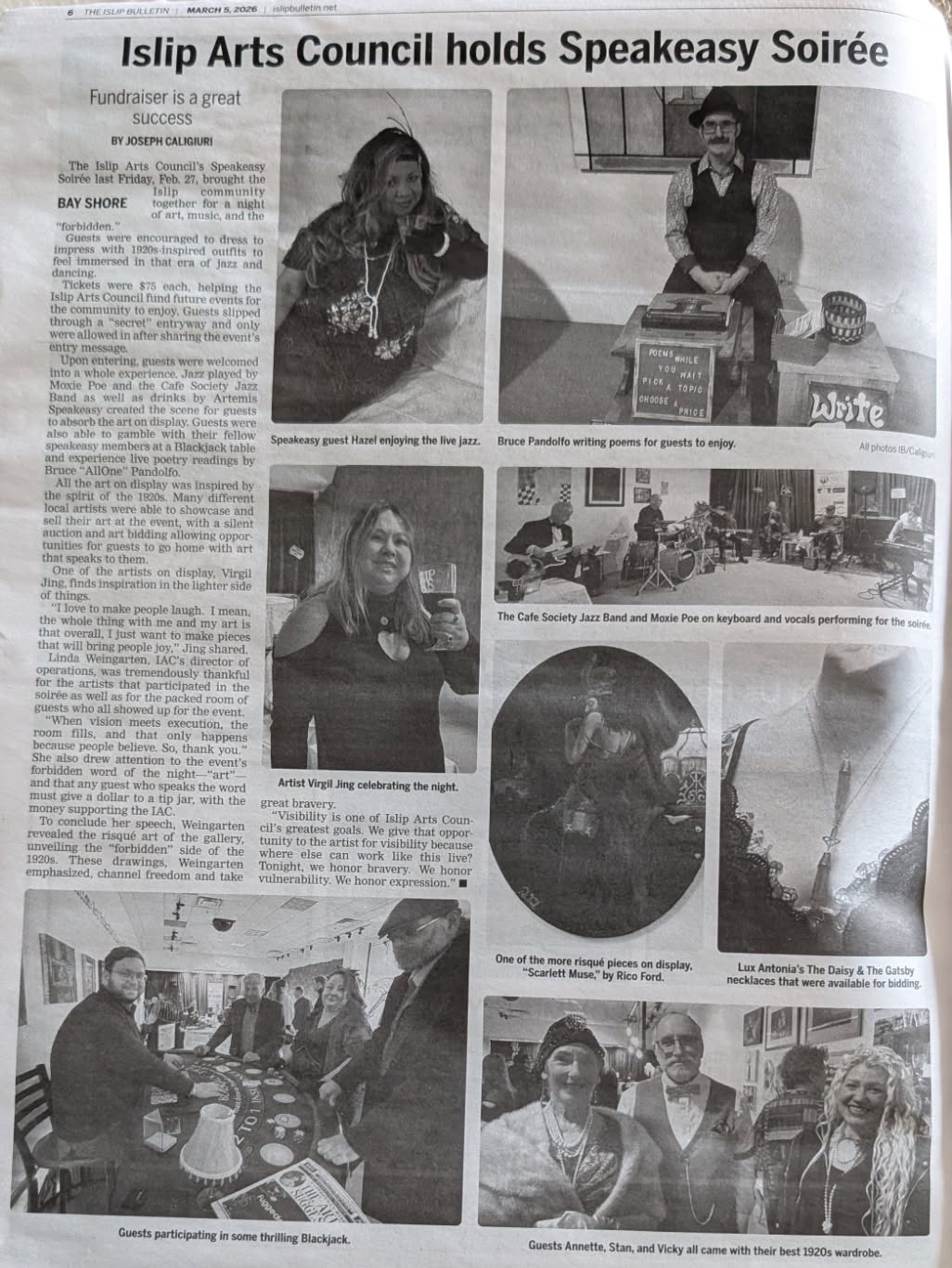 Founded in 1974, the Islip Arts Council is dedicated to leadership, advocacy, and excellence in the arts. Our goal is to present, produce, and promote culturally responsive, high quality programs in varied artistic disciplines for our diverse Long Island community.